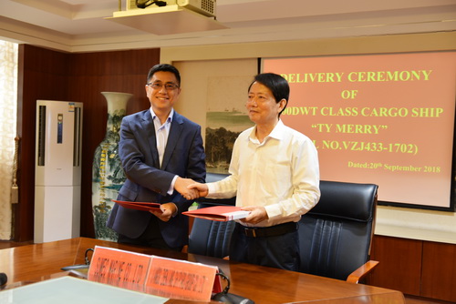 In the morning of September 20th 2018, the 5th 3700DWT class cargo ship--"TY MERRY" in series we built for Korea owner was delivered successfully. The ship is with 83.4m in length, 14m in breadth, 7.5m in depth, 5.8m in design draft and meet with Korean Register. |