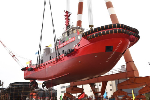 On the morning of November 16, 2018, "Bingang towing 8", which is a 2 × 1471kw ASD tugboat designed and built for Binzhou Port Group Co., Ltd, was successfully launched in our company. |