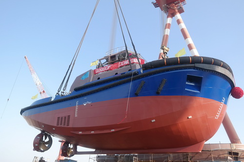 On the morning of January 27, 2019. "CAO PORT 27", which is a 2660kW ASD tugboat built for Caofeidian Tugging Services Co.,Ltd, Tangshan Port was successfully launched in our company. |