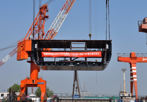 In the morning of April 17th 2019,the new 800PCC 2# car ro-ro ships we built for Shanghai Ansheng Automotive Shipping Co.,Ltd. Got keel laying. |