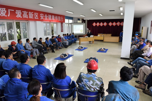 On the afternoon of May 30th, 2019, labor union and safety department of our company organized special training for first aid in the employee’s training center. Almost 100 people from each workshop, office and sub-contractor attended the training. |
