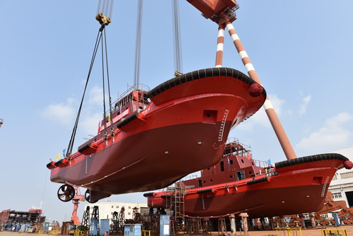 【Launching】Launching for two units of ASD tugboat with FIFI