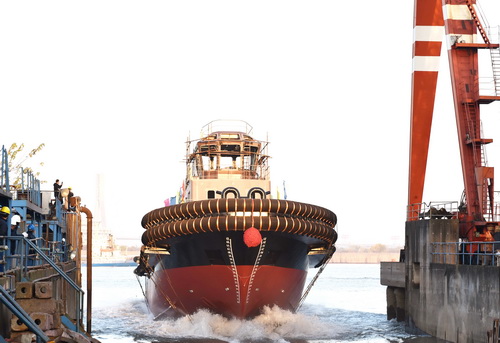 【Launching】Launching for One Unit of 5000HP ASD Tugboat with Water Supply