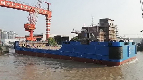 The vessel has a total length of 78 meters, a width of 26 meters, a depth of 5.6 meters and a maximum draft of 3.5 meters. A 360° rotating floating crane is installed in the middle and rear area of the main deck, which is controlled by DC variable amplitude rotation.The aft of the main deck is equipped with poop and three deckhouses, which can provide living services for 42 people.