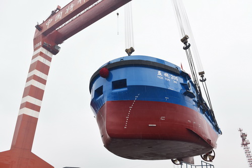 2020年1月10日,我公司为中远海运散货运输有限公司参与的“一带一路”重大建设项目而批量建造的系列工作船第9艘——“益拖205”顺利吊装下水。 |