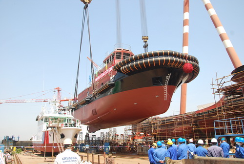 【下水】我公司2942kW全回转拖轮顺利吊装下水