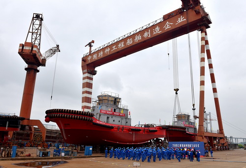2020年5月9日,我公司为宁波舟山港股份有限公司设计建造的2艘5000hp全回转消拖两用船顺利吊装下水。 |