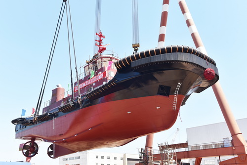 【下水】我公司5000HP全回转拖船顺利吊装下水