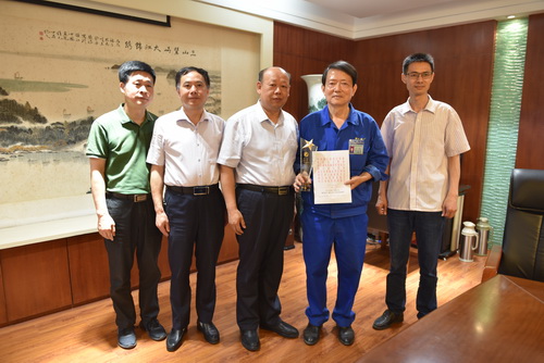 2020年5月27日上午,镇江市市场监督管理局吴圣涛副局长一行来到我公司,将镇江市“诚信标兵”奖杯授予郭琰董事长。 |