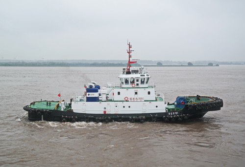 2020年7月15日,我公司为镇江港务集团有限公司设计建造的功率2×1840kW全回转港作拖船——“镇港拖5001”完工交付,顺利启航。该船是目前我国长江内河港口功率最大的全回转拖船。 |
