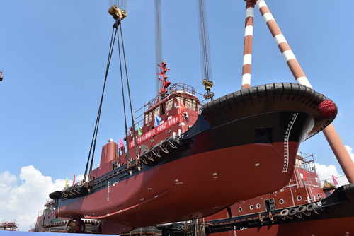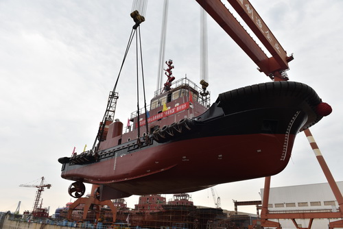 【下水】我公司2艘消拖两用全回转船顺利吊装下水