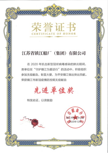 近日,我公司被镇江市献血办公室授予镇江市新冠疫情防控期无偿献血“先进单位”荣誉称号。 |